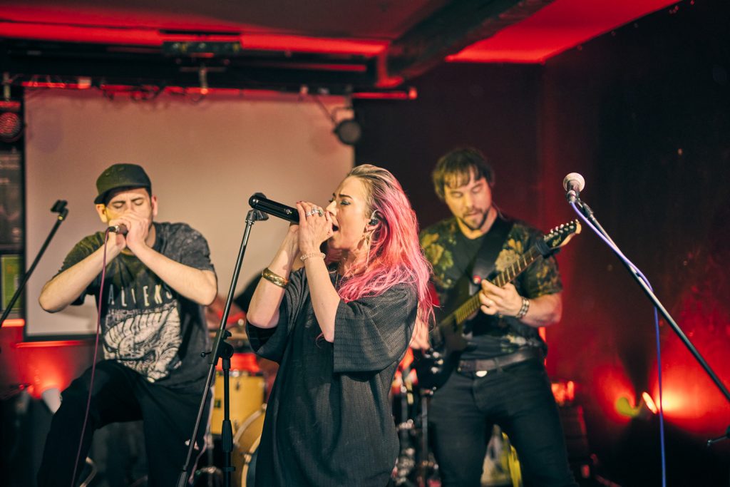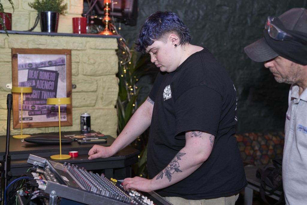 Deaf Romero: If ADENiCO brought the soul, Deaf Romero brought the riot energy. The Halifax/Huddersfield trio delivered a neon-soaked, high-octane tribute to ’90s alt-rock. With their “cartoony, punkish” energy and synth-driven chaos, they were easily the most unpredictable act of the night. Their dual vocals and eccentric storytelling (ranging from occult themes to breakfast tables) left the crowd reeling in the best way possible.